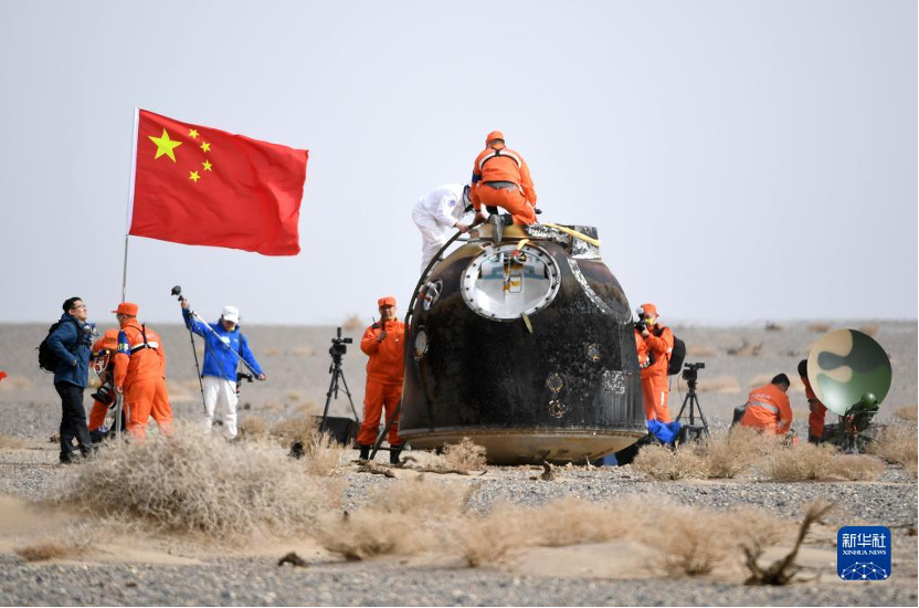 4月16日,神舟十三号载人飞船返回舱在东风着陆场预定区域成功着陆。新华社记者彭源 摄