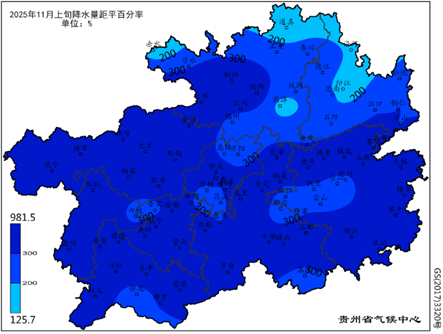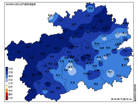 贵州省2025年11月上旬气象旱涝监测