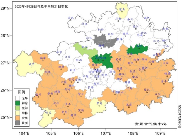 贵州2023年4月28日气象干旱综合监测及其与21日对比