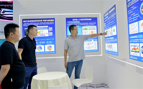 2024年年初,国家数据局等17部门印发《“数据要素x”三年行动计划(2024-2026年)》,推动12项重点行动,其中包括“数据要素x气象服务”。近年来,气象数据产品持续“上新”,中国气象局在2023年至2024年先后发布五批《基本气象数据开放共享目录》,包含106种气象数据和产品,推动气象数据在各行业的充分应用,围绕现代农业、能源安全、金融、低空经济等领域,让数据应用效益不断显现。图为8月28日,在数博会展馆现场,国家气象信息中心展台吸引社会各界人士驻足参观和了解气象数据产品价值与运用。(石奎 李兰兰)