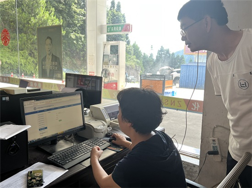7月12日,丹寨县气象局执法人员到排调镇顺风加油站开展防雷安全检查。